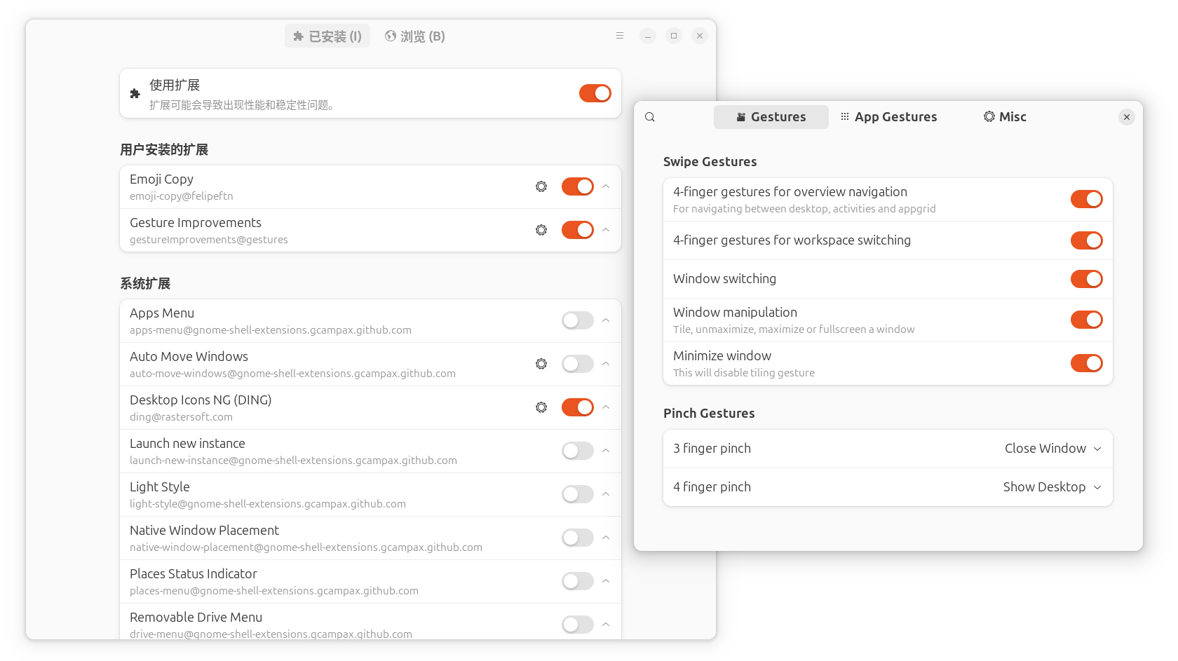 由于我使用的是 Xorg ,所以这里我选择了文章里介绍的 Gesture Improvement 插件。
